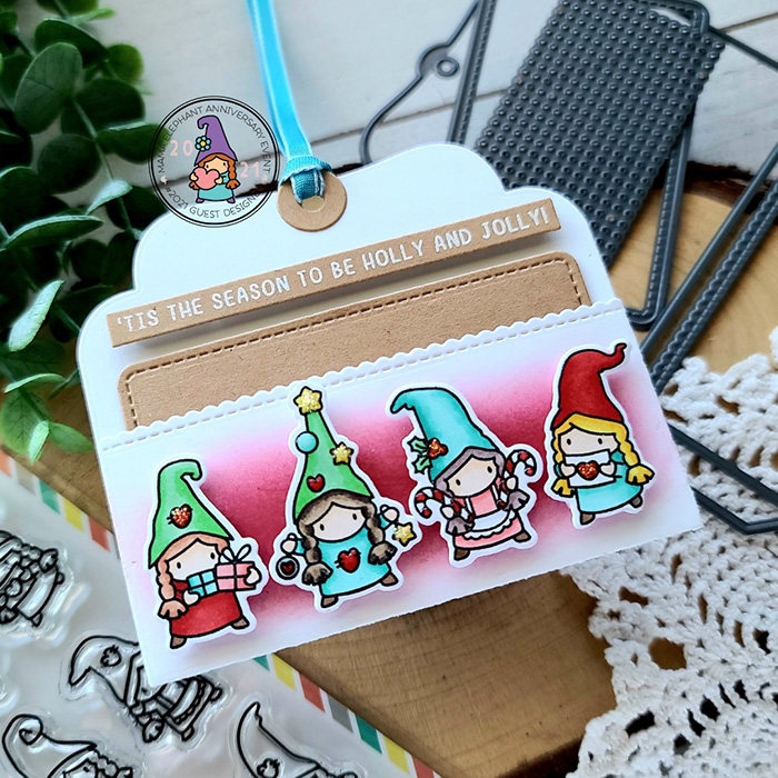 Hi crafty friends! This is Amanda from Twiddler's Nook sharing a sweet gift card holder featuring the new Little Girl Gnome Agenda cuties, those awesome Easy XMas Greetings and the previously released Gift Pocket Tag dies.