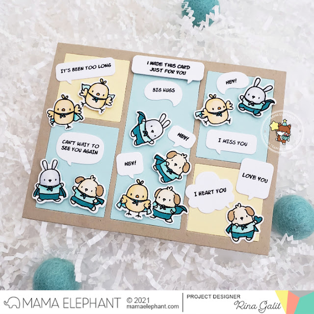 Another cute card, once again, Rina. I love that your superheros are so talkative. Thanks for the inspiration.