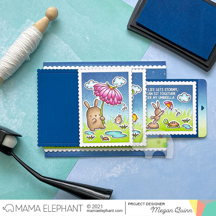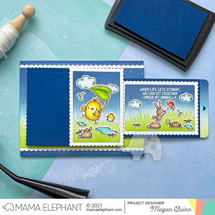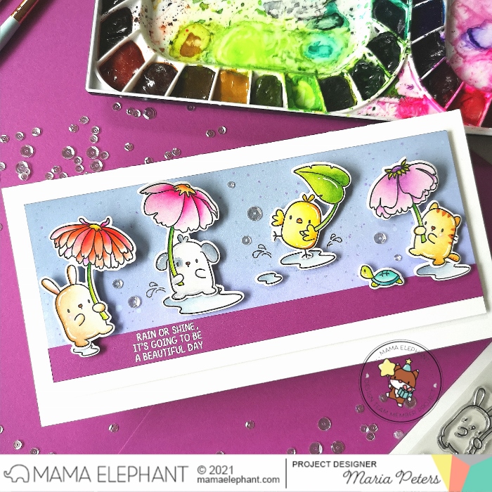 Keeway used the Slim Scenescape Builder to put together a sweet rainy day scene with critters from the Flower Shower set.