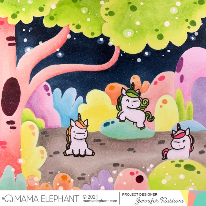 Jennifer created a little colorful scene using the Little Unicorn Agenda stamp set.