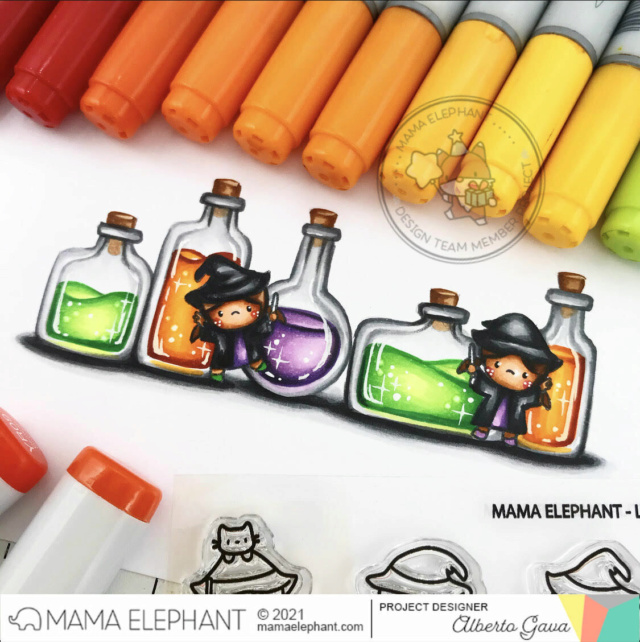 Alberto used the Little Witch Agenda stamp set combined with some hand drawn potions to create this magical scene!