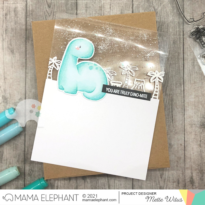 Mette created a fun see through card for the Me And My Dinosaur, using the scenery elements to make the see through part more interesting.