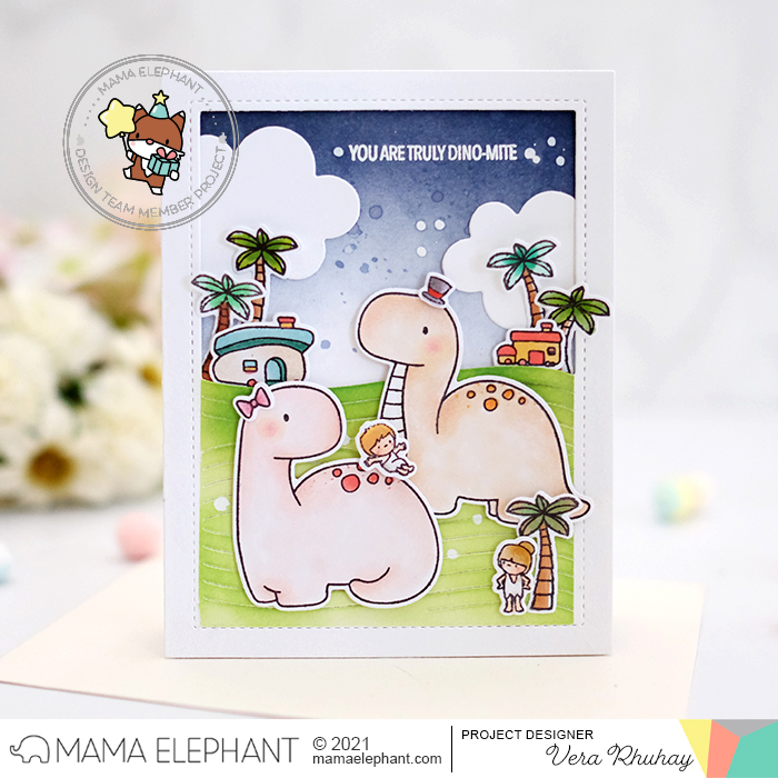 For this sweet card, Vera combined the Me & My Dinosaur with the new Rolling Waves Cover - Creative Cuts.