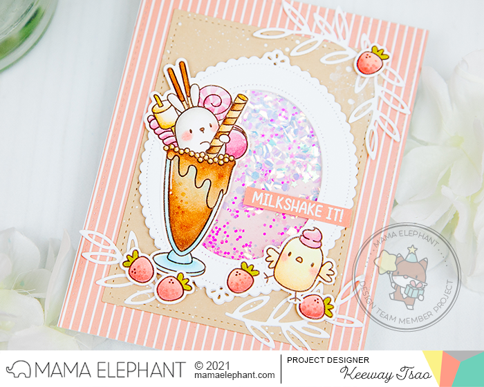 Megan created this sweet shaker card using the Milkshake Stamp Set in combination with the Oval Deco Frame Creative Cuts.