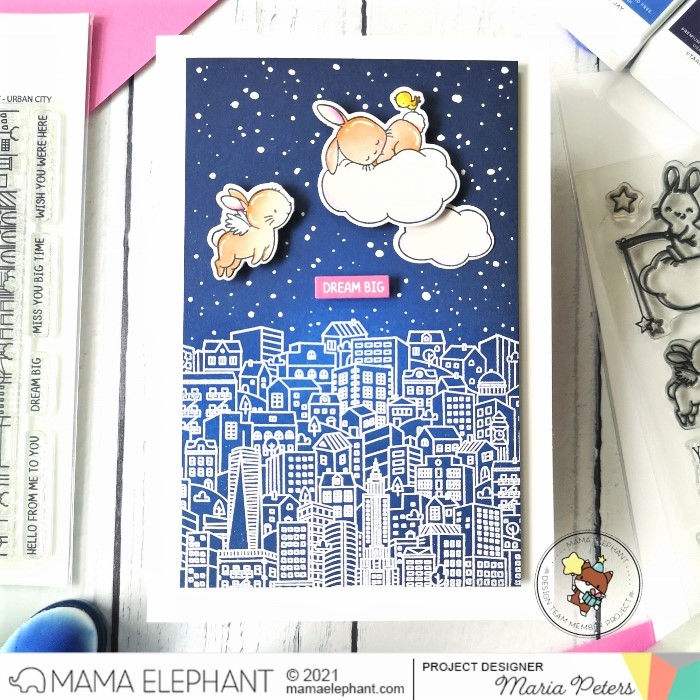 Maria create a super sweet night scene with the Urban City Stamp Set in combination with the Wish Upon The Stars Stamp Set and Creative Cuts. Magical!