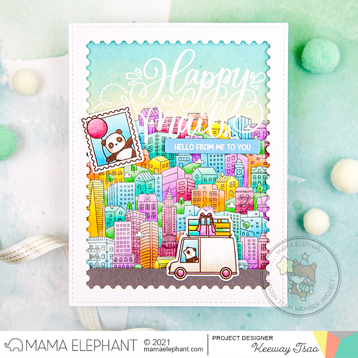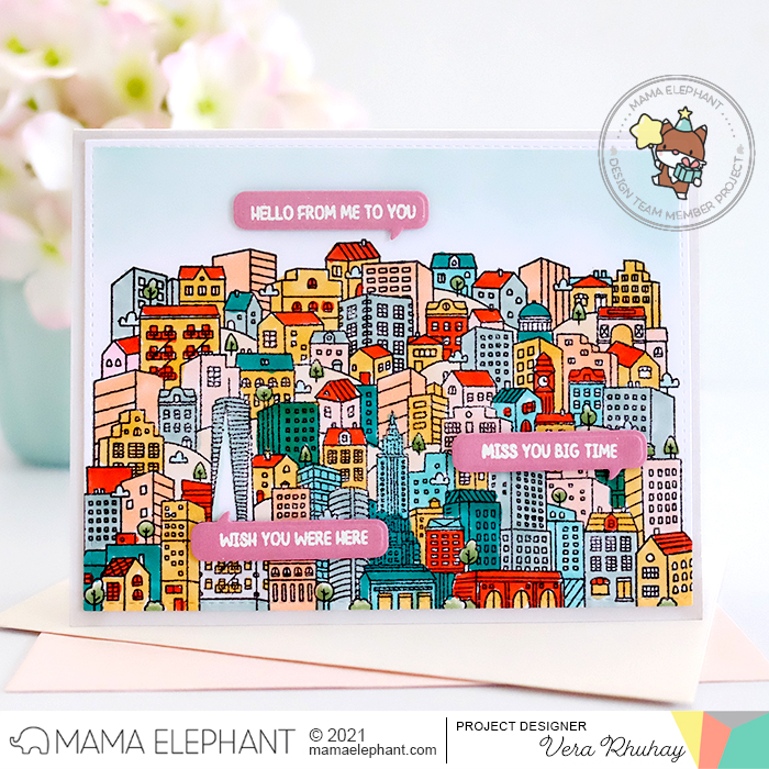 For this Urban City card, Vera paired the stamp set with the Let's Chat - Creative Cuts.