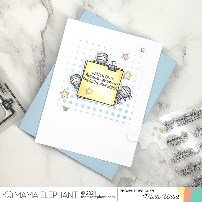 Mette combined the Ninja Sayings with the Little Ninja Agenda and the previously released Sticky Notes stamp set to leave sneaky little notes for awesome people.