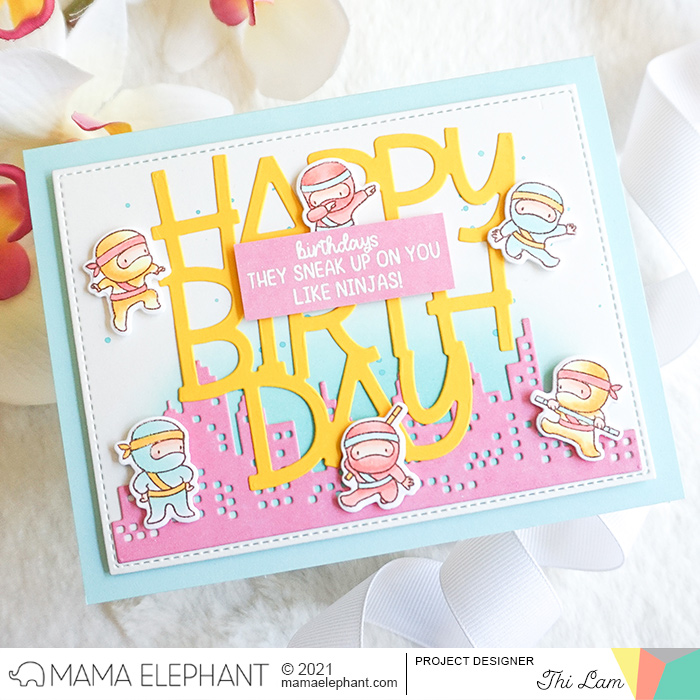 We love Thi's birthday card where she pairs Ninja Sayings with Little Ninja Agenda, Cityscape and Big Happy Birthday - Creative Cuts . Such a sweet and festive card!