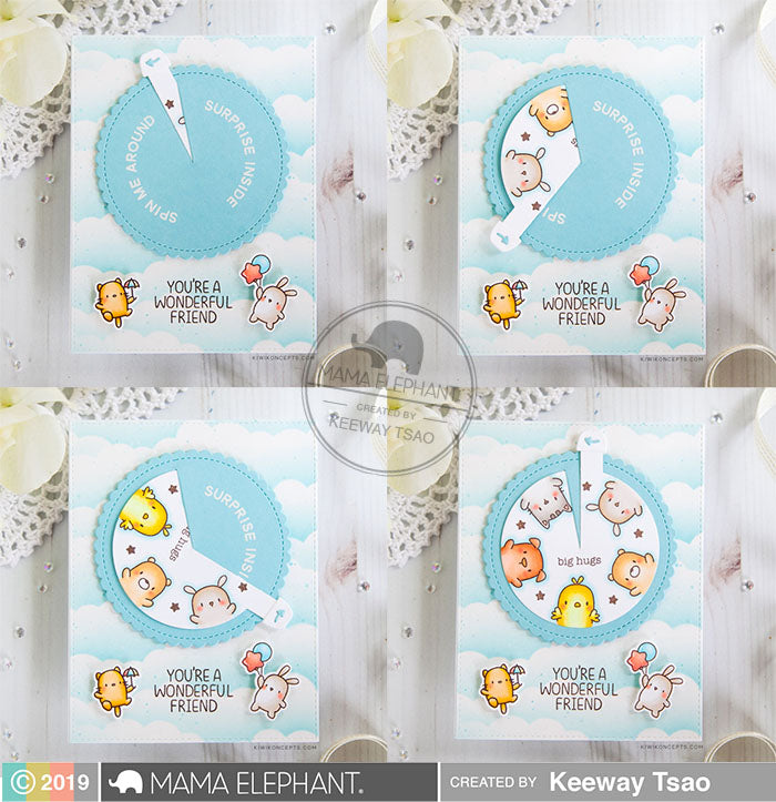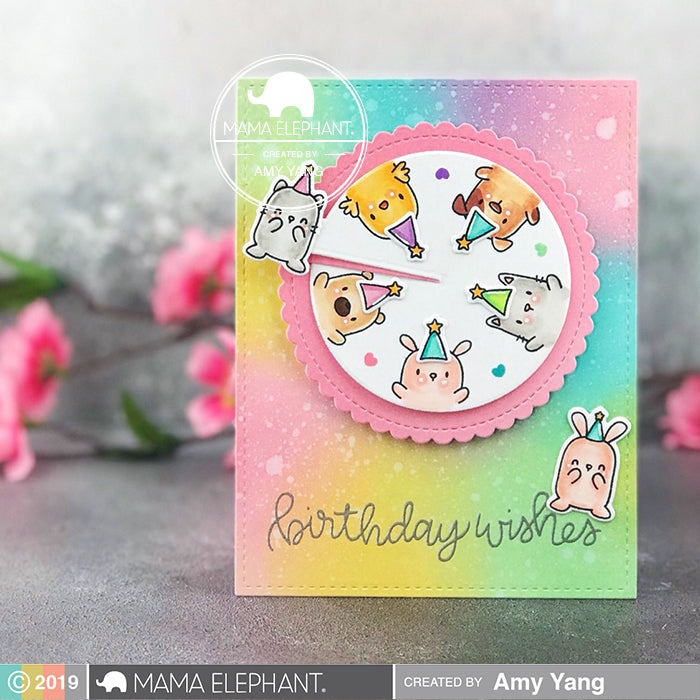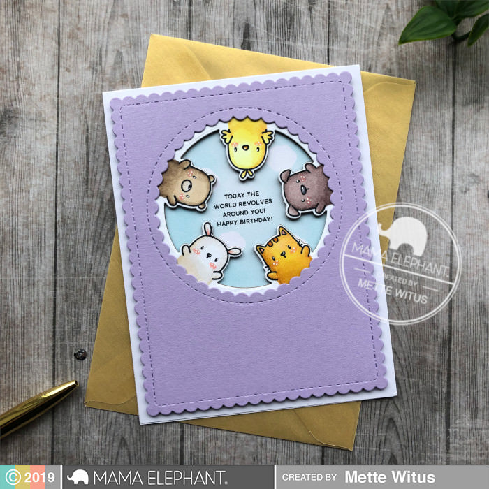 The Circle of Friends is a clear stamp set that includes your favorite characters from the Mama Elephant line! This set works in 2 ways, the straightforward circle of a group hug, or if you look closely you will find a different perspective - up! Like they are looking down at you, and the sky floats above them! And we've got the most awesome sentiments to complete them with!