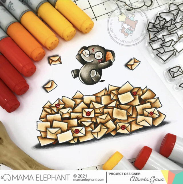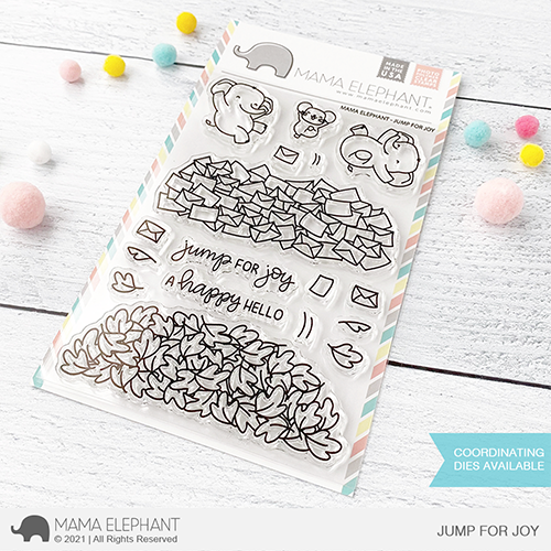 Jump For Joy stamp set is illustrated by Kryssi. This set has two big fun piles for characters to jump right into! The coordinating creative cuts (sold separately) also includes a slit to bury your characters in!