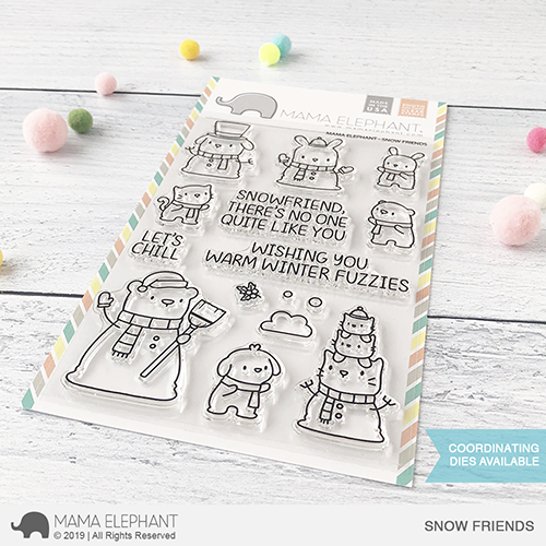 Snow Friends is a stamp set full of cute critters in snowman form! We have a snowbear, a snowdog, a snowbunny and a set of stacking snowcats! So don on your mittens and build your winter scenes with these snow animals and their friends!
