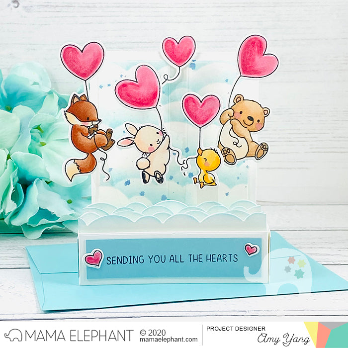 Up with Love, a stamp set, illustrated by Aida Zamora is filled with adorable critters flying away with heart balloons. These images are super sweet for Valentine's Day, anniversaries and any occasion you want to send some love!