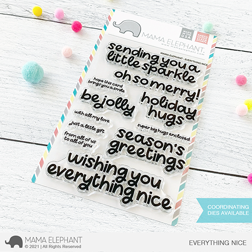 Everything Nice stamp set is a holiday sentiment set that includes sentiments in two different sizes. Coordinating creative cuts sold separately.