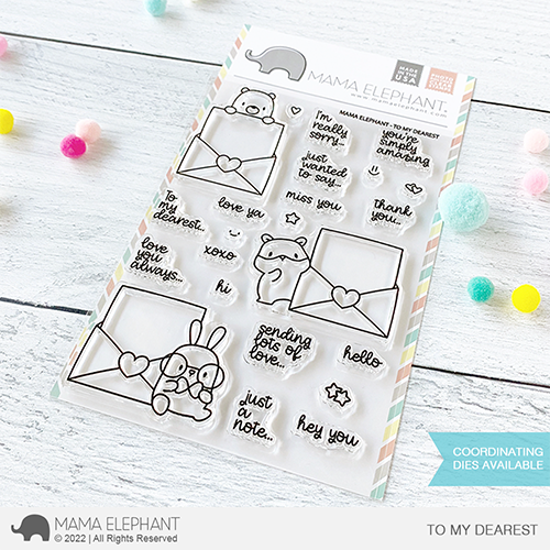 To My Dearest stamp set features love notes accompanied by Mama Elephant characters! Mix and match your notes with sentiments provided or write your own!