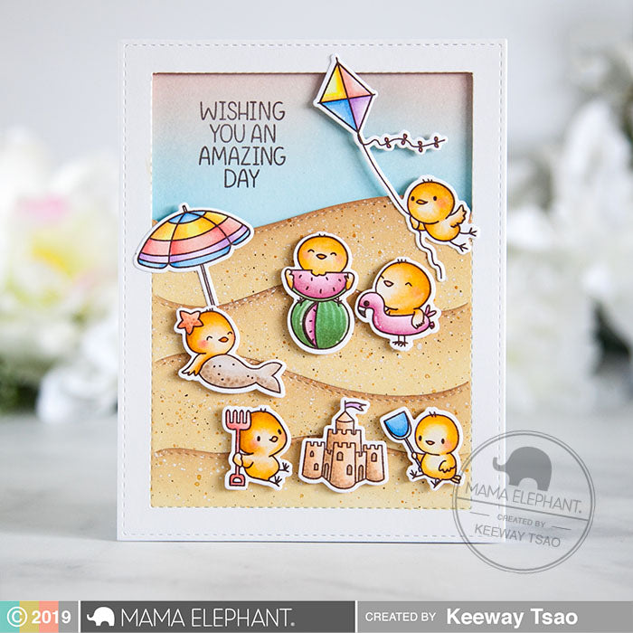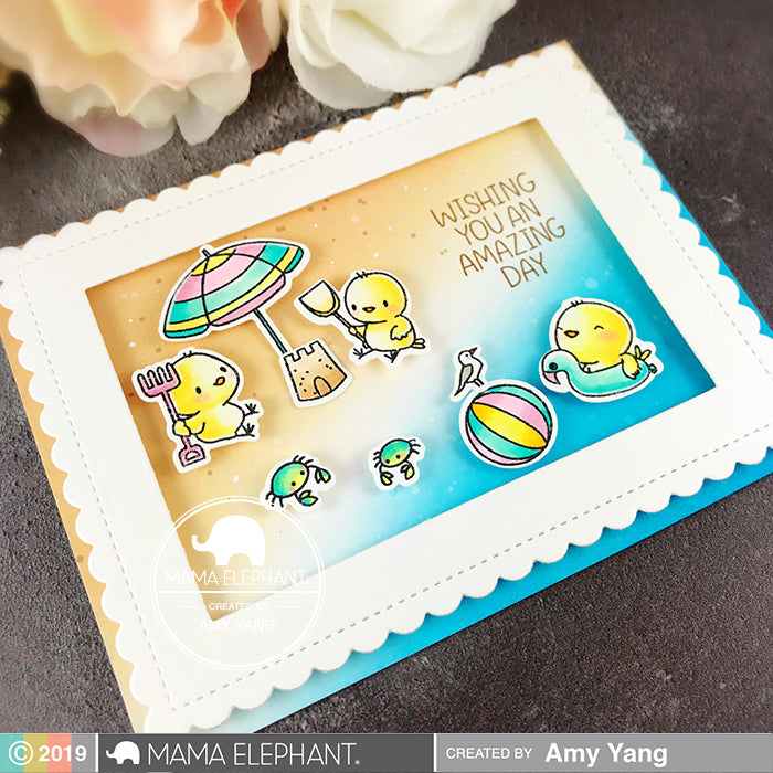 This Beach Chickies clear stamp set is a feel good sweet-as-can-be Summery set of chickies hanging out and having fun in the sun! Beach Chickies is illustrated by Aida Zamora who has become synonymous with these storybook like characters that truly feel like they come to life!