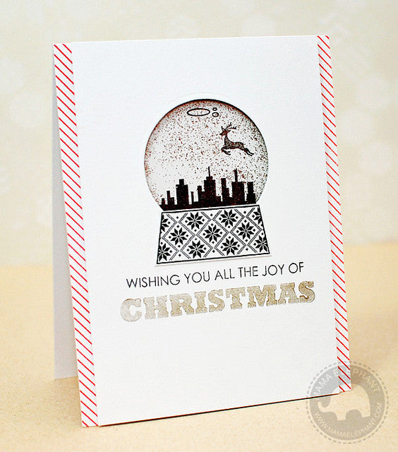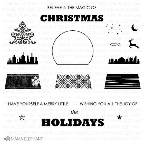 Believe in Magic is a fun mix and match holiday set! The design is timeless and classic. Believe in Magic comes with 3 different bases and 3 different interiors to create the perfect wintry scene! Use the bubbles to create the look of the snow globe filled with water. Control how much 'glitter' you want in your snow globe with the confetti stamp. Try stamping the fun characters from Polar Pals. You will be delighted to know that they fit inside the snow globe making this set one of the most versatile holiday stamp yet!