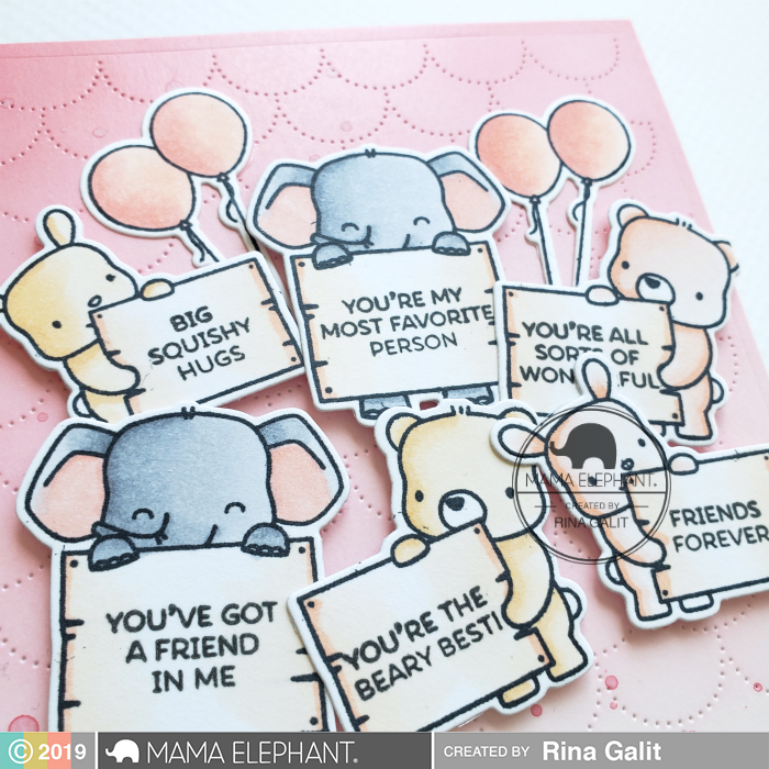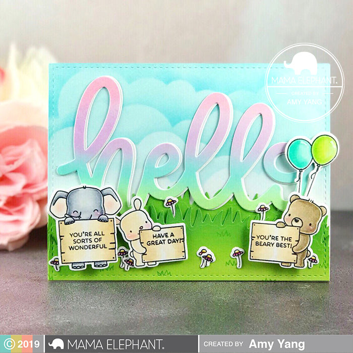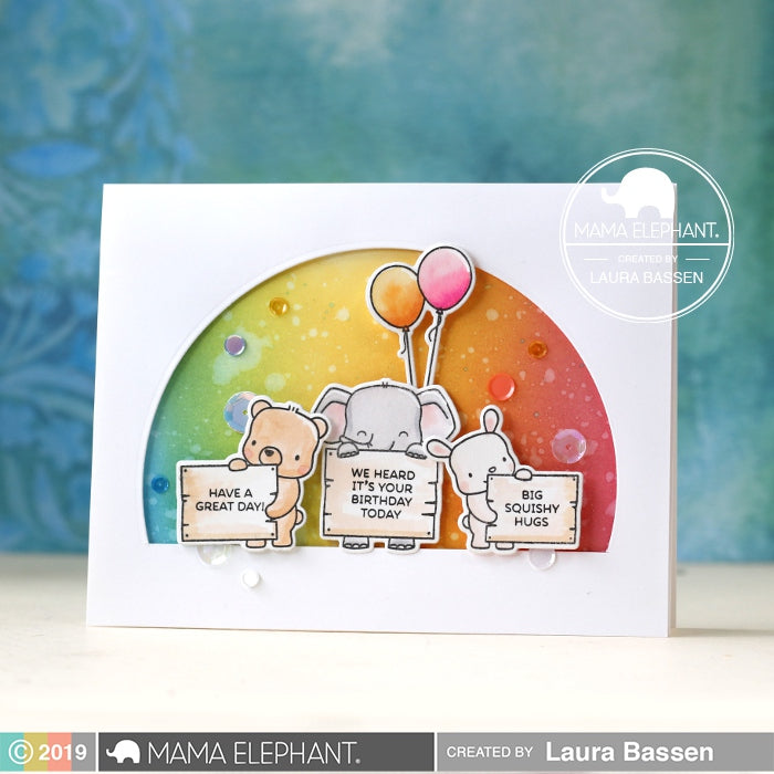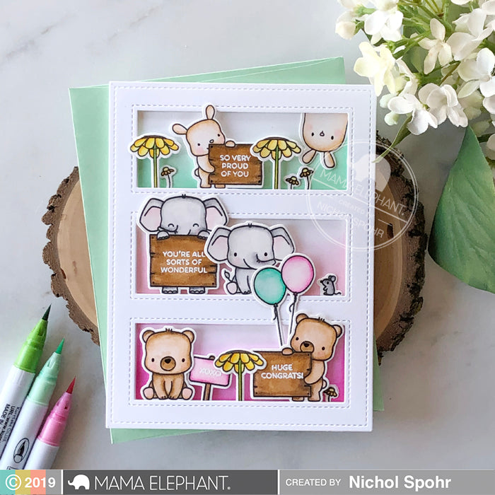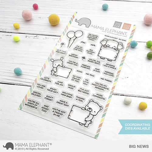 Big News stamp set features the elephant, bear from Stackable Cuties -- and a new friend, the bunny! We love using the same characters to give you more versatility to mix and match older sets to create something truly unique! Big News is very much along the same lines of Three Amigos with a ton of sentiments perfect for any occasion!