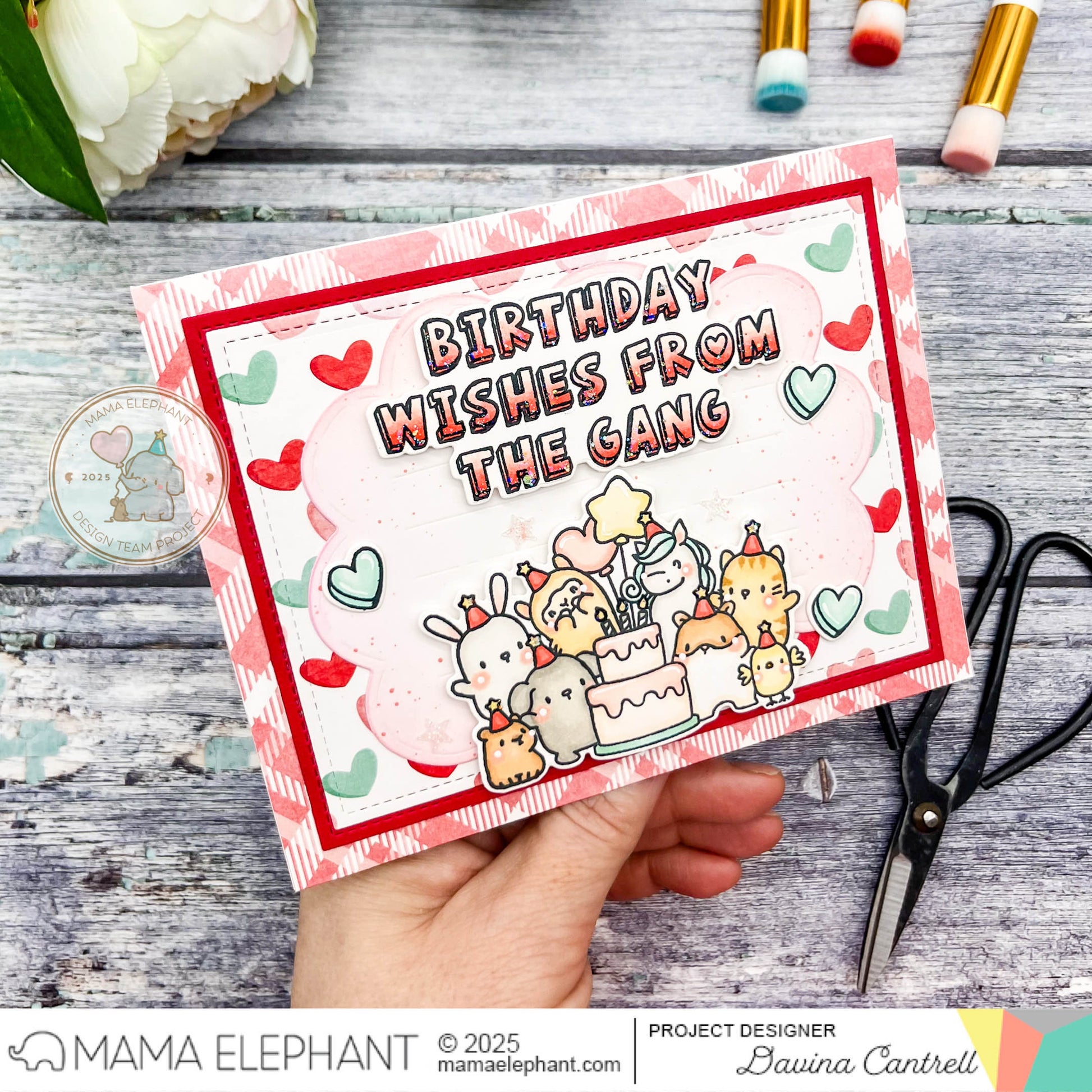 Celebrate birthdays with Mama Elephant friends in this delightful Birthday Block Set clear stamp set! Featuring an adorable group gathered around a cake, this set also includes two bold sentiments: "May all your dreams come true" and "Birthday wishes from the gang"—perfect for spreading joy on someone's special day.