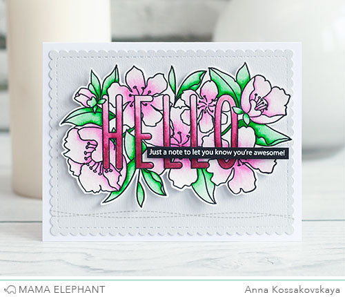 Botanic Hello is a hand drawn floral set against a simple typeface font. It is large enough to shine on its own on a card front. No other frills needed to make this beautiful statement piece!