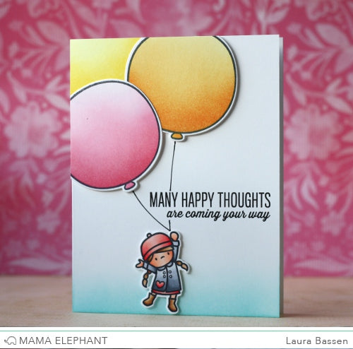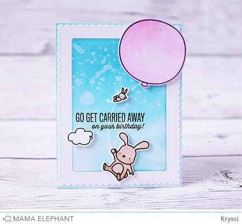 Carried Away is designed in the same style and even matching sentiments to our popular Up and Away stamp set, but now the critters have got some kiddie friends to get carried away with!