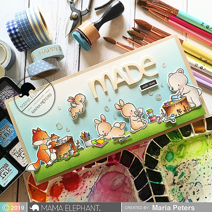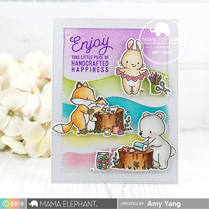 Crafted With Love stamp set is illustrated by the lovely Aida Zamora! In this adorable set, we have a rabbit paper cutting, a fox stamping and a bear die-cutting! This set totally speaks to our creative hearts!