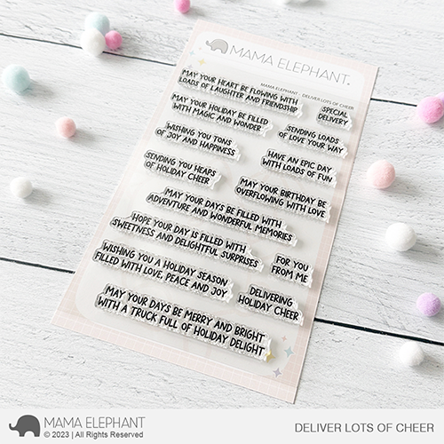 Deliver Lots of Cheer stamp set is a unique collection of sentiments centered around holiday cheer and wishes. This set was designed to go along with our Deliver by Truck stamp set. It captures the essence of special deliveries and the abundance of joy they bring. Share your appreciation and love for life's fullness with this stamp set!