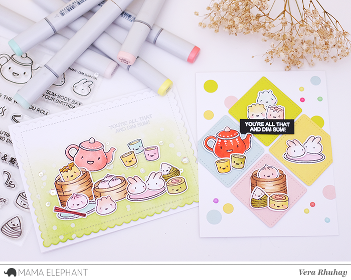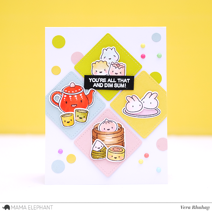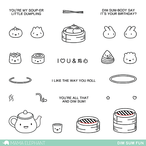 In this set, you'll have so much fun with the the punny sentiments and the yummy as can be dim sum cuties like "ha-gaus" and "siu-mais"! Tuck in these little dumplings into their steamers and serve!