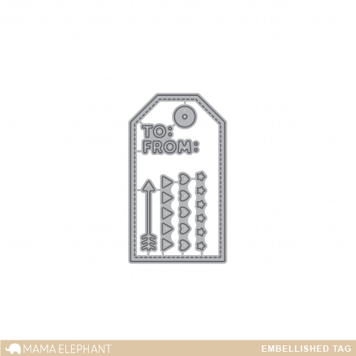 This stand alone die set cuts out a tag shape with a stitched border. It also includes an arrow, a row of stars, hearts and triangles for perfect pattern or an added embellishment.