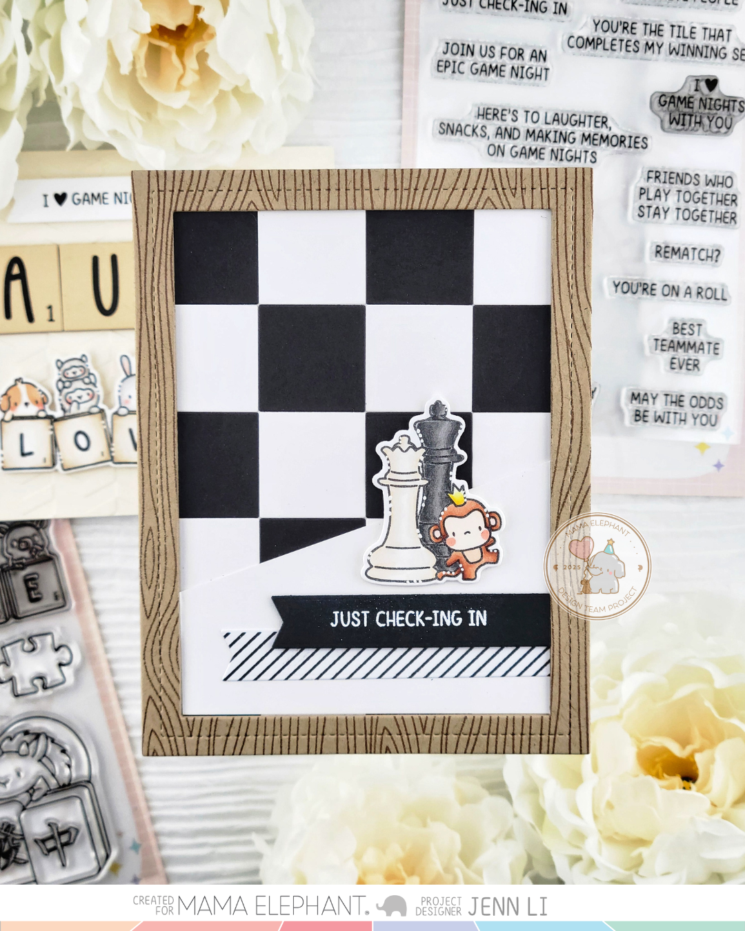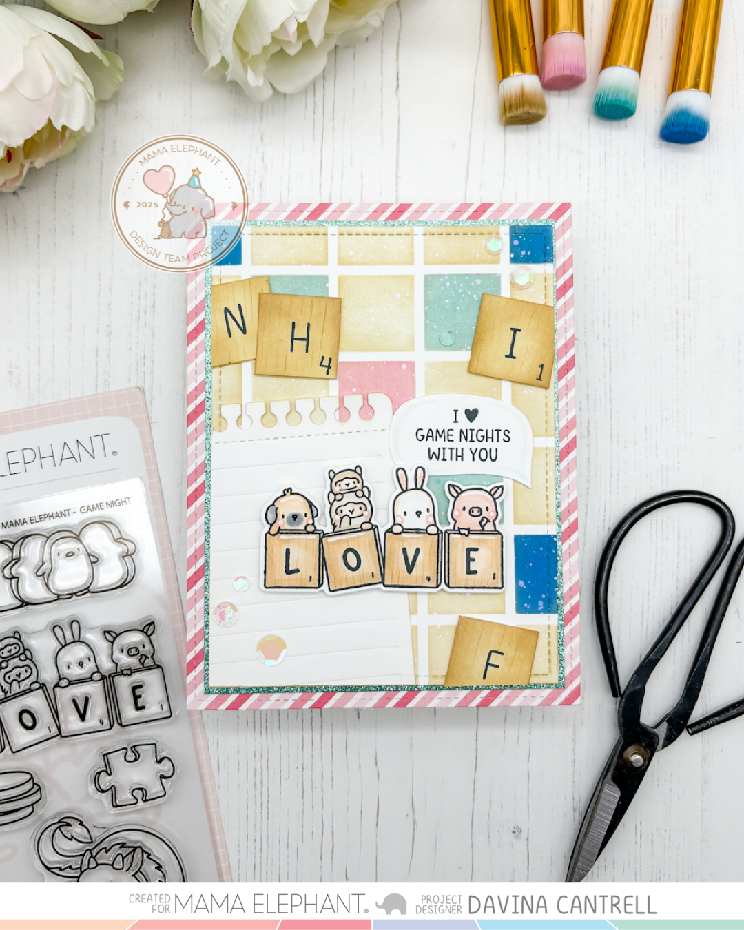 Game Night Clear Stamp Set features Mama Elephant friends alongside a delightful mix of board game pieces—from classic Mahjong tiles and Scrabble-inspired letters to colorful meeples and more! These are great for creating cards, tags, and crafty projects that celebrate game nights, friendship, and a little friendly competition.