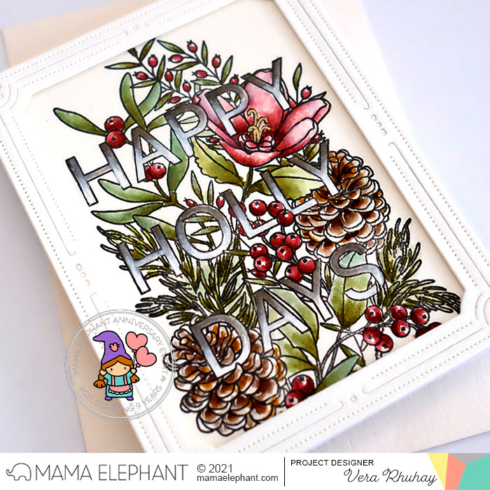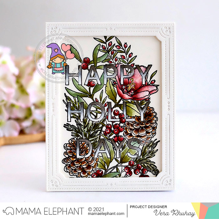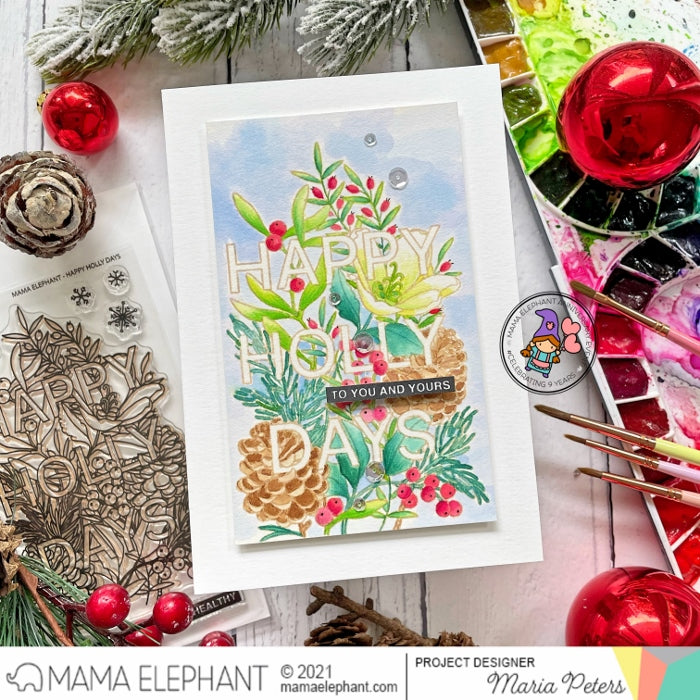 Happy Holly Days stamp set illustrated by Anna Oszvald. Anna follows up on the gorgeous You Matter To Me stamp set with this holiday floral beauty. A clever play on words against a beautiful background, this is the set you want if you're looking for elegant and beauty all in one.
