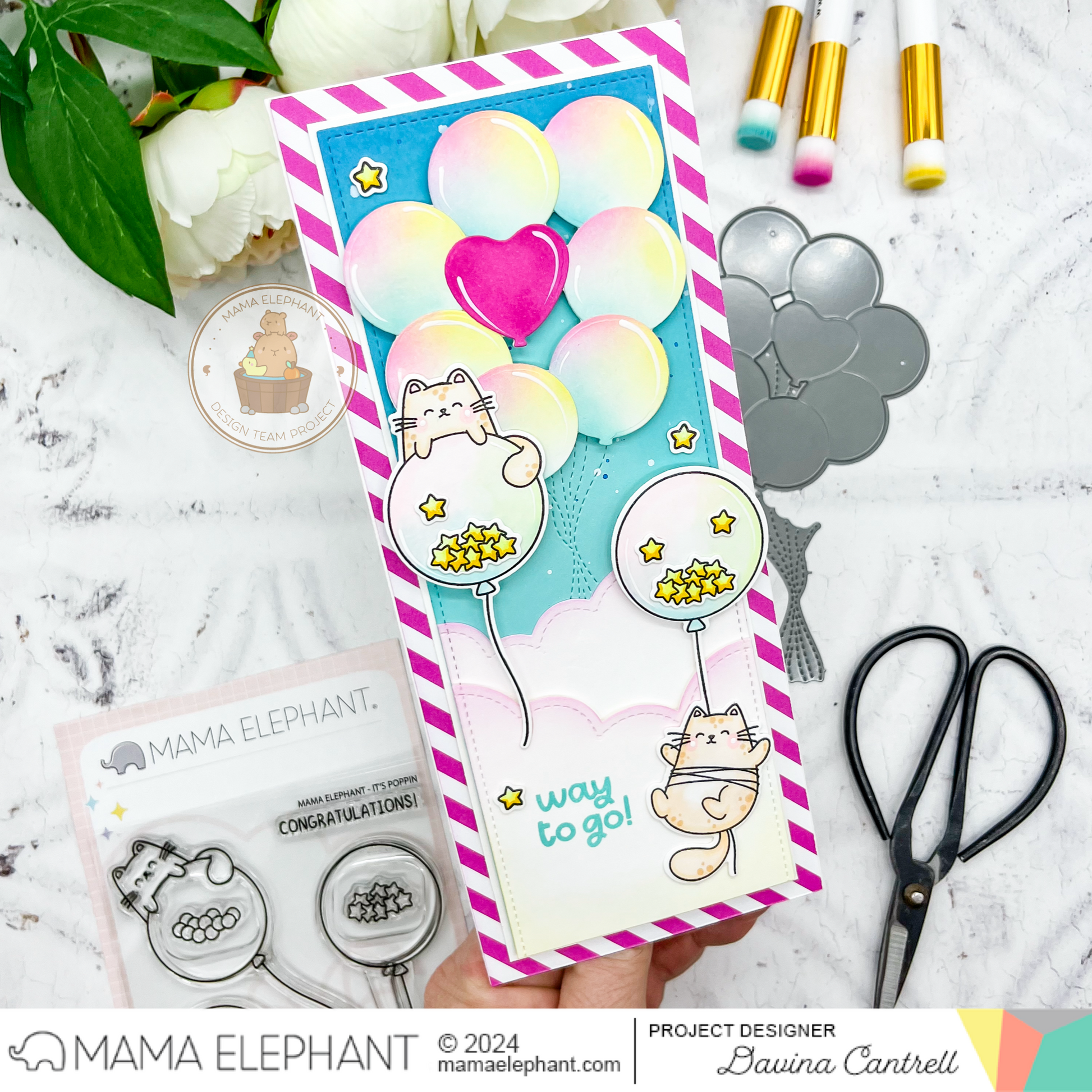It's Poppin clear stamp set is an adorable set illustrated by Kryssi. Each stamp captures the characters in various playful poses, with their fluffy tails trailing behind as they soar through the sky. This delightful set is perfect for adding a dose of charm to your projects making it an ideal choice for cat lovers!