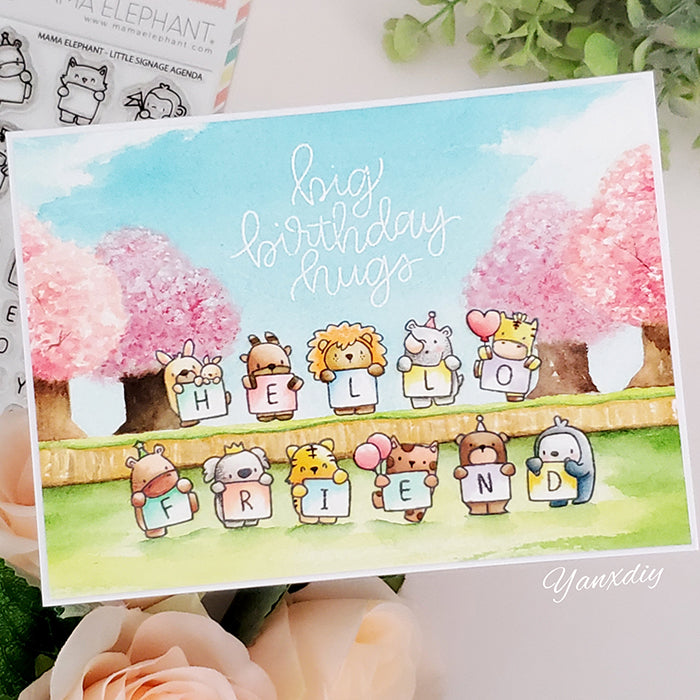 Little Signage Agenda consists of Mama Elephant signature characters holding up little signs. You can create custom messages or fill them with tiny images They are back and ready to show the world your tiny custom messages!