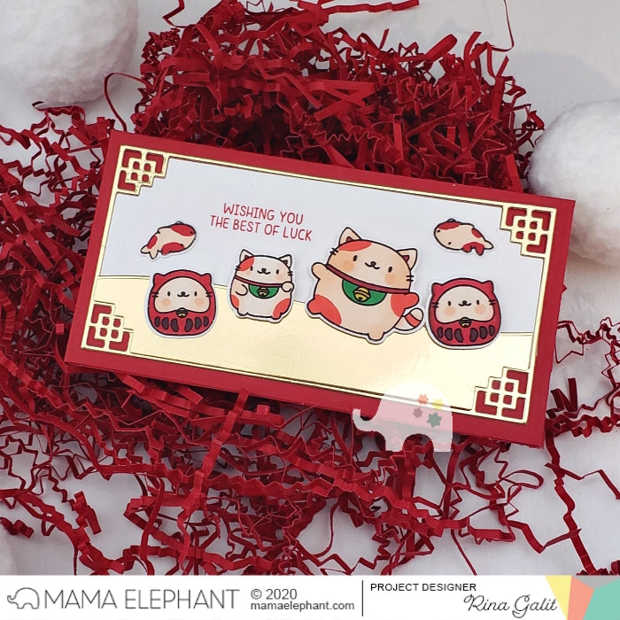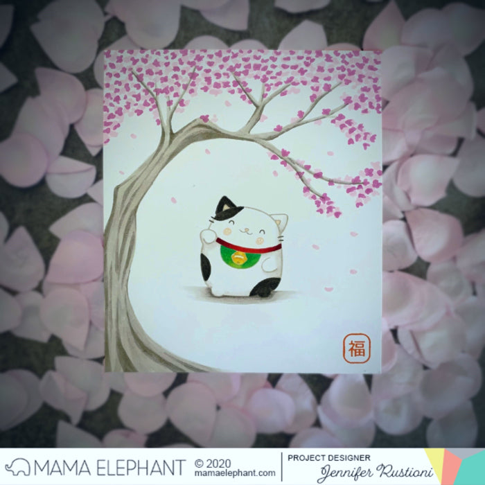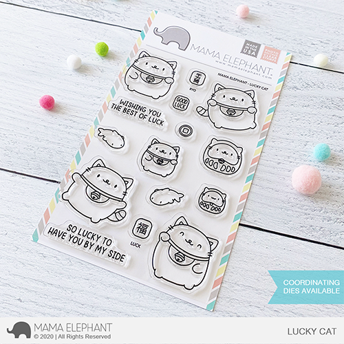 Lucky Cat stamp set includes all things lucky! This set includes a Mama Elephant style Maneki-neko cat which is often believed to bring good luck. Alongside the cat, we also have a kitty daruma doll included in the set for extra luck!