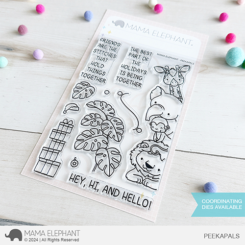 PeekAPALS clear stamp set is illustrated by Aida Zamor and it features a stack of adorable safari animals peeking out from the right and including a few accessories, they are ready to brighten any project! This set also can coordinate with our previous set, PeekaBUDDIES stamp set. These stack of animals can create borders to either side of your projects.