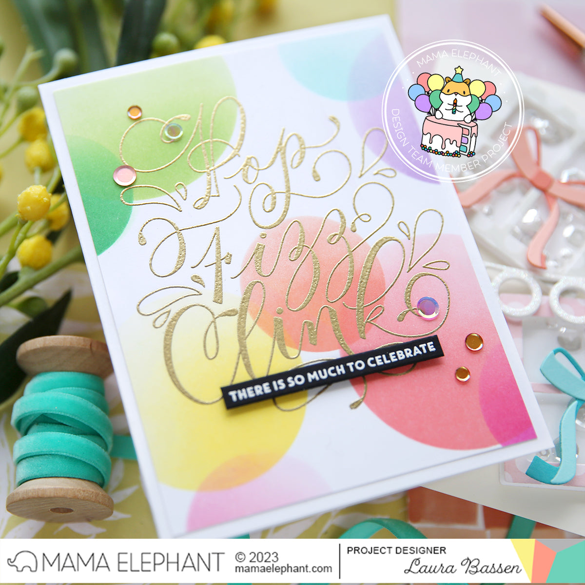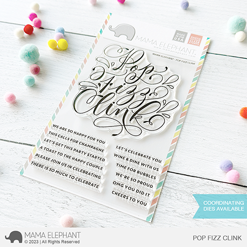 Pop Fizz Clink stamp set features a beautiful hand written sentiment by Paola Esteron. This set is also filled with happy celebratory sentiments for those times that calls for a celebration!