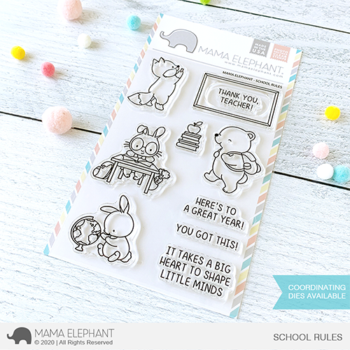 School Rules stamp set is illustrated by Aida Zamora. Her heartwarming characters are illustrated perfectly for most school related projects such as Back To School and Teacher Thank You cards!