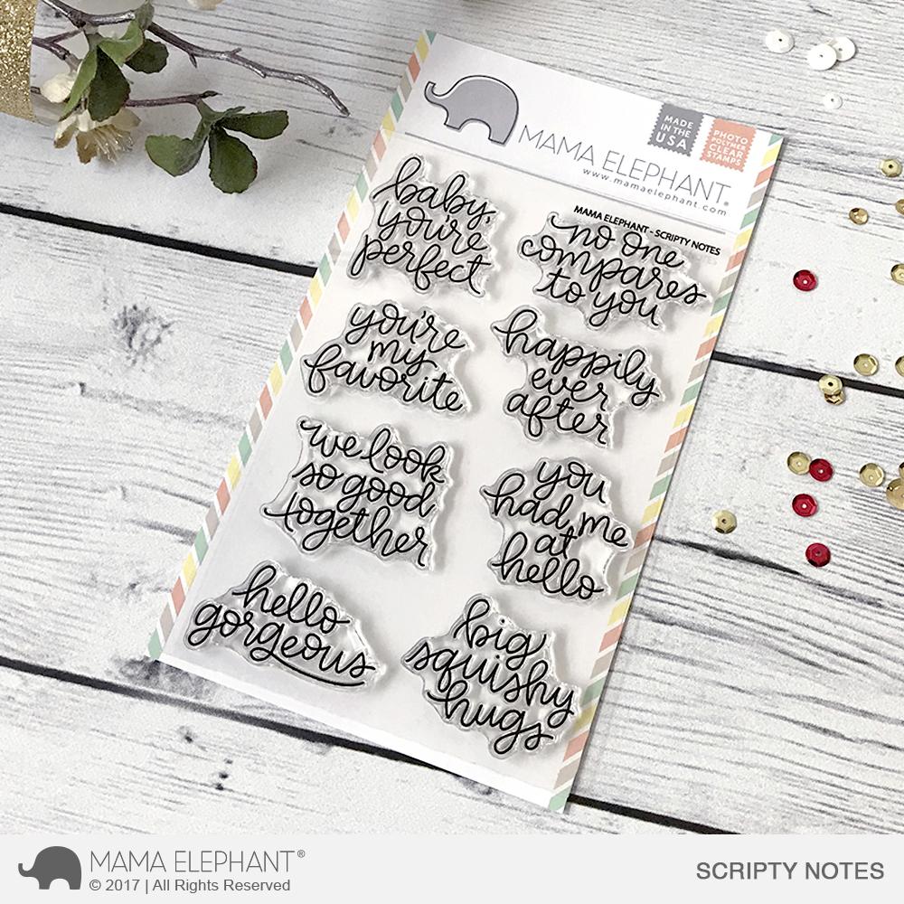 Scripty Notes features a bouncey, flirty penmanship. With so many squish-worthy sentiments in this set, it pairs nicely with any sweet image!