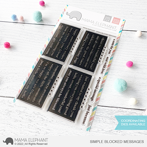 Simple Blocked Messages set is filled with uplifting sentiments in a solid block! Stamp with your favorite color ink and line up with the creative cuts (sold separately) with the stars and pass it right through the machine for one easy cut!