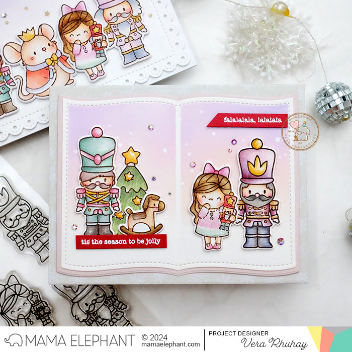The Nutcracker is an enchanting clear stamp set that brings the magic of the Nutcracker to life with hand-drawn illustrations of beloved characters. Featuring three regal nutcrackers, the mischievous Mouse King, and the Sugar Plum Fairy, this set is perfect for capturing the festive spirit of the classic holiday tale. Whether for Holiday cards, gift tags, or décor, these whimsical designs will add a touch of charm and wonder to your crafting projects.