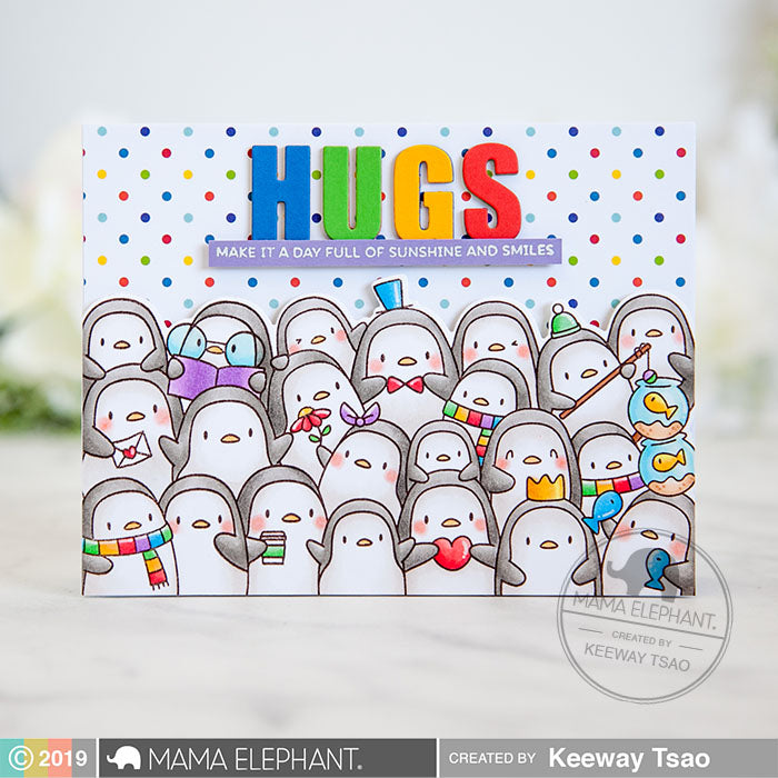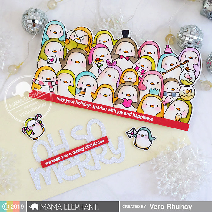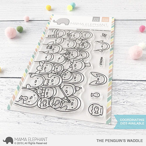 The Penguin's Waddle stamp set includes a pack of penguins that you can stamp repeatedly to create a full card background or just use singularly as a border. Either way, if you love coloring, you will love this!