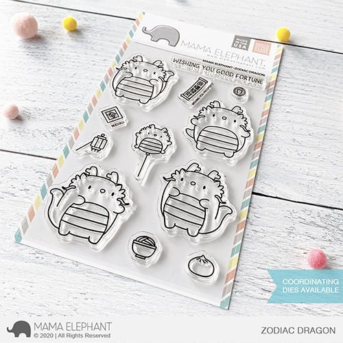 The Zodiac Dragon stamp set includes 4 adorable dragon images and accessories. The coordinating creative cuts (not included) provides a slit for holding accessories. Use these images for your Lunar Year Celebrations or for any occasion!