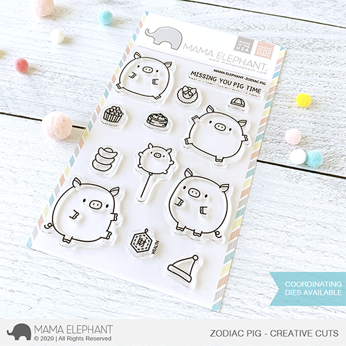 The Zodiac Pig stamp set includes 4 adorable pig images and accessories. The coordinating creative cuts (not included) provides a slit for holding accessories. Use these images for your Lunar Year Celebrations or for any occasion!